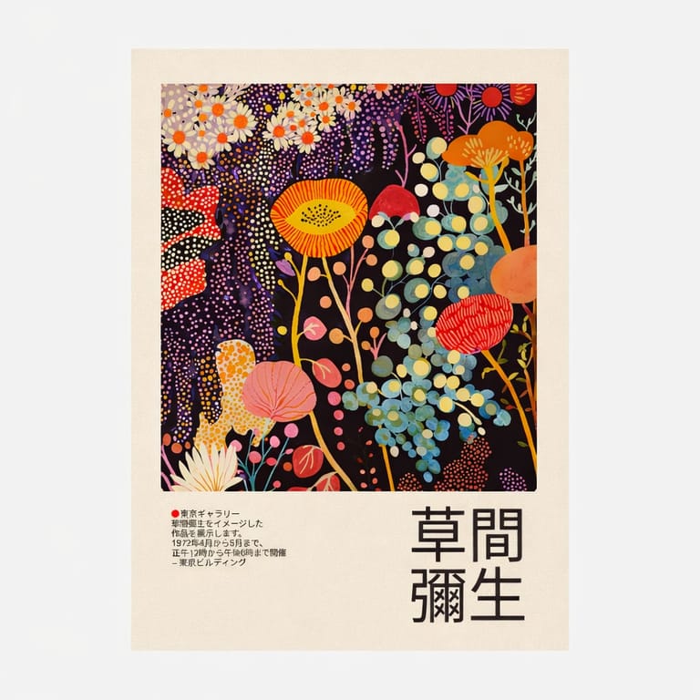 La typographie japonaise intégrée à l’affiche renforce son caractère muséal et narratif, comme si cette œuvre provenait directement d’une exposition artistique contemporaine à Tokyo.